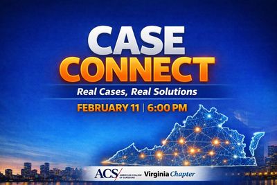 Save the Date for the Virginia Chapter, American College of Surgeons' new interactive case presentation experience – VA-ACS CaseConnect. This virtual program will be held on Wednesday, February 11 at 6PM.